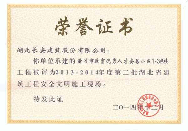 2014年省安全文明榮譽證書