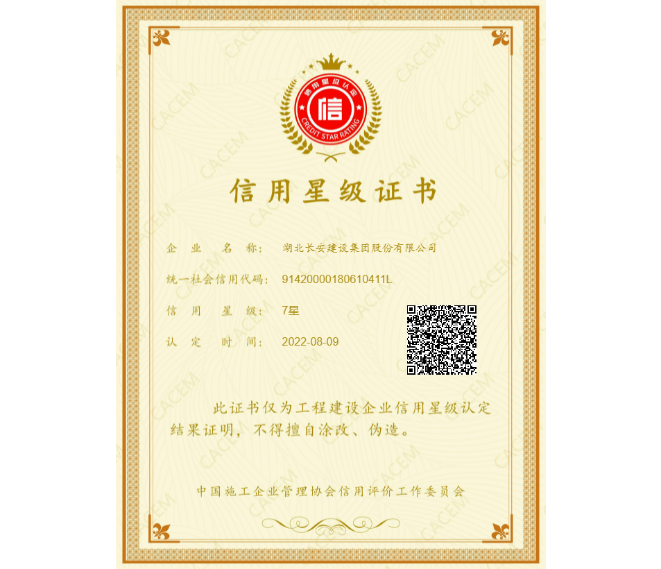 集團通過“工程建設企業信用7星級”認定