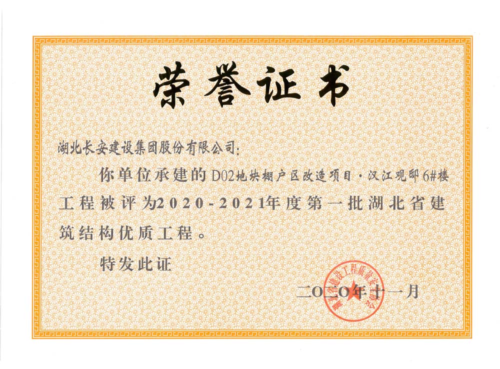 D02地塊棚戶區(qū)改造項目丶漢江觀邸6#樓2020-2021年度第一批湖北省建筑結構優(yōu)質工程