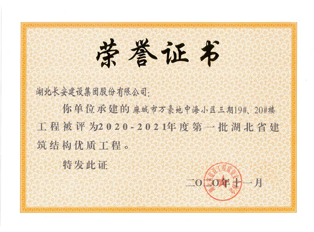 麻城市萬豪地中海小區三期19#、20#樓2020-2021年度第一批湖北省建筑結構優質工程