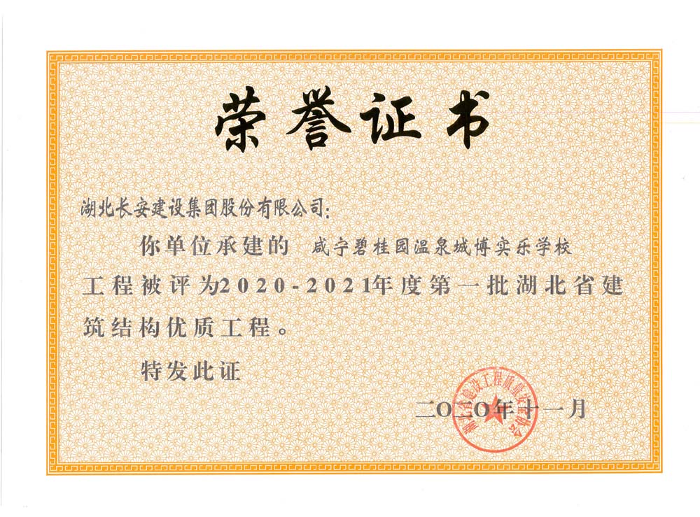 咸寧碧桂園溫泉城博實樂學校2020-2021年度第一批湖北省建筑結構優質工程