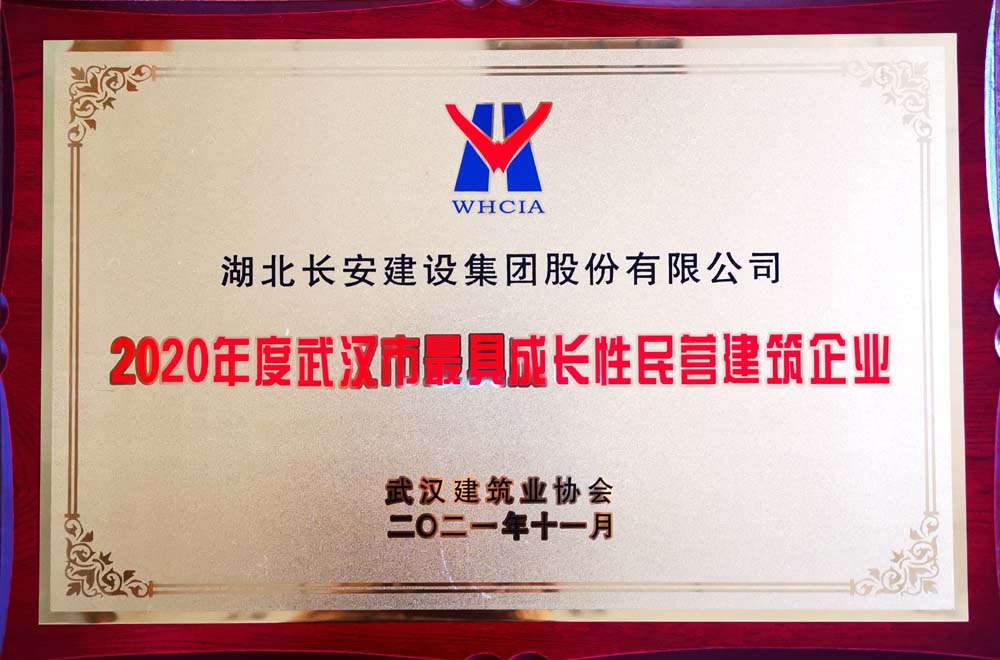 湖北長安建設(shè)集團榮獲2020年度武漢市最具成長性民營建筑企業(yè)榮譽稱號