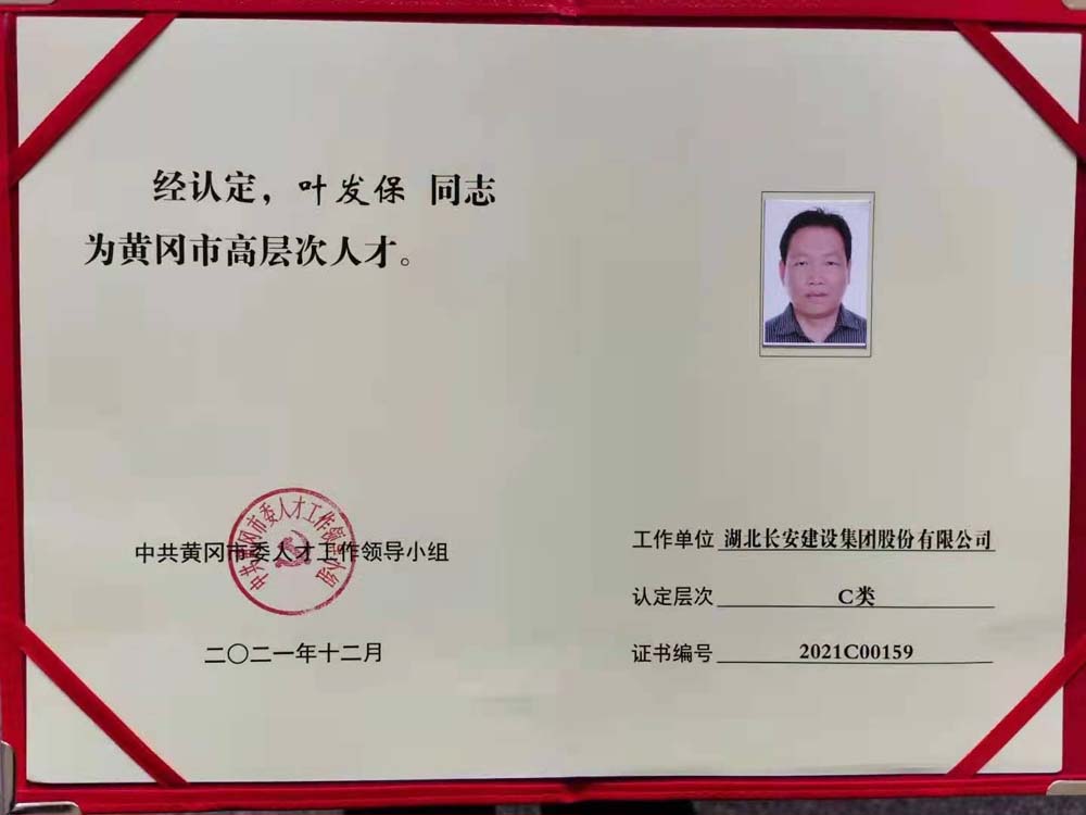 集團總經理葉發保榮獲“黃岡市高層次人才”稱號