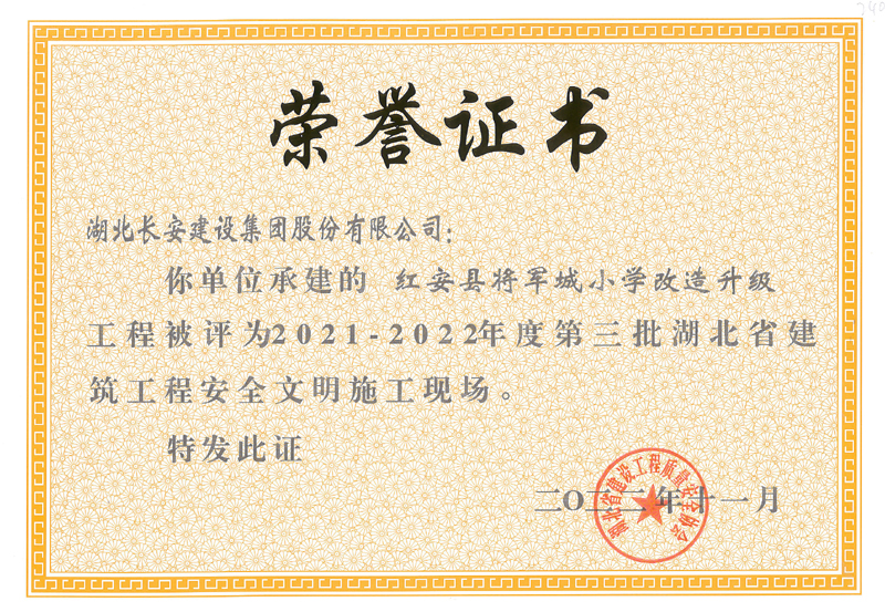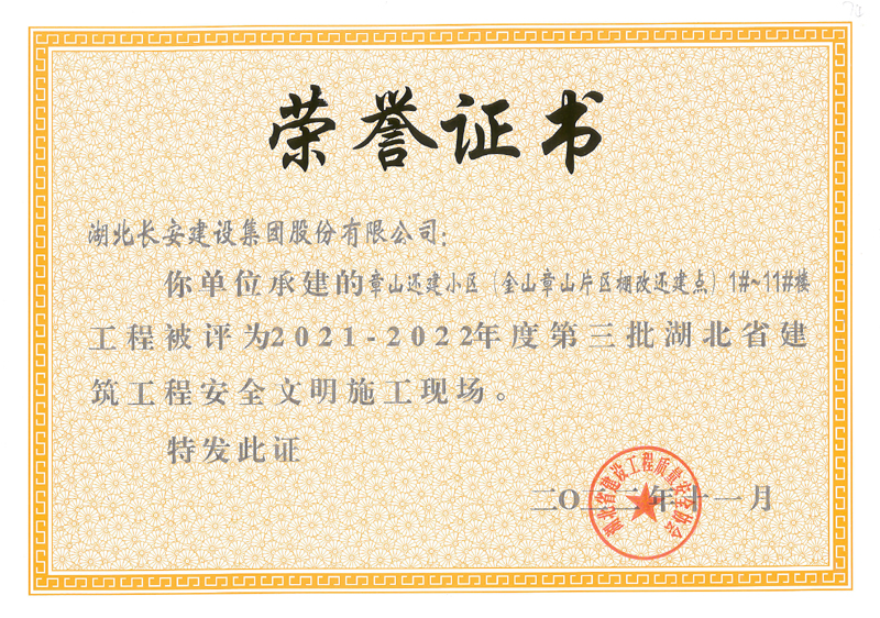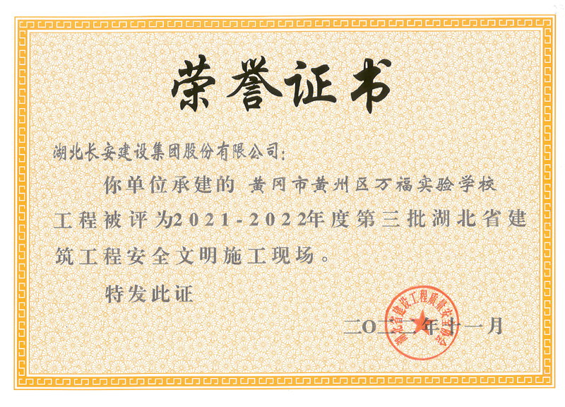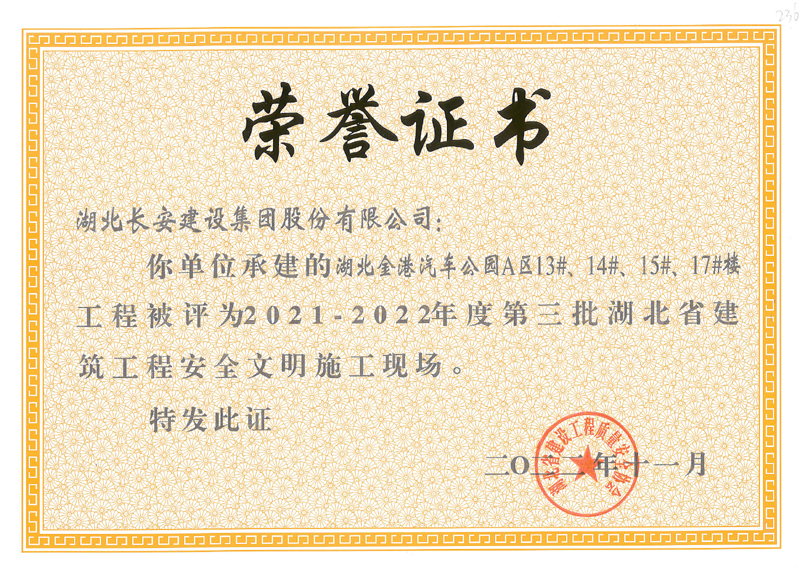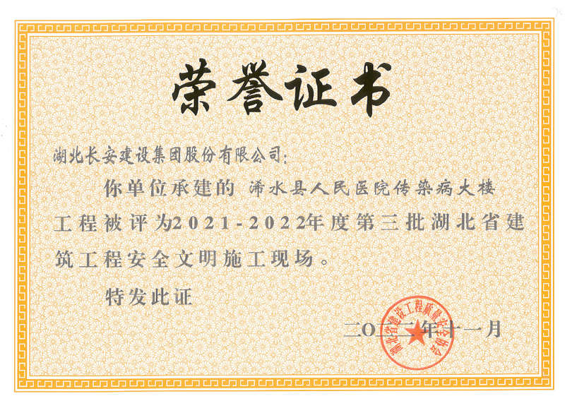 麻城市公共衛生中心等8個工程項目榮獲2021-2022年度第三批湖北省建筑工程安全文明施工現場