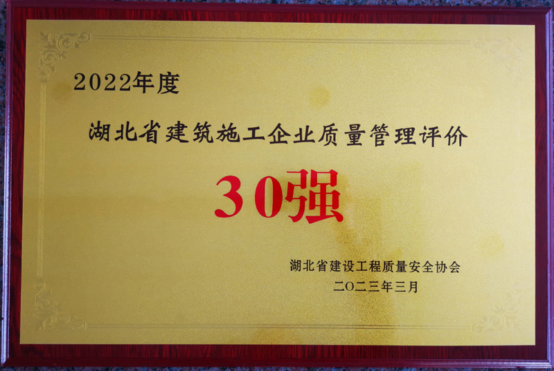 集團公司榮膺2022年度湖北省建筑施工企業質量管理評價第9名
