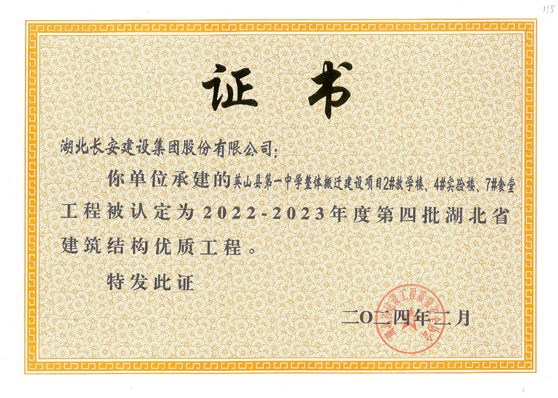 黃岡市白蓮河橋北片區棚戶區改造項目等4個工程被評為2022-2023年度第四批湖北省建筑結構優質工程