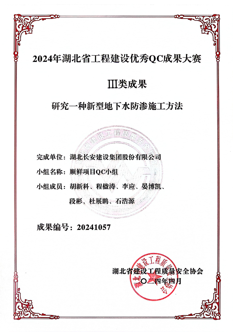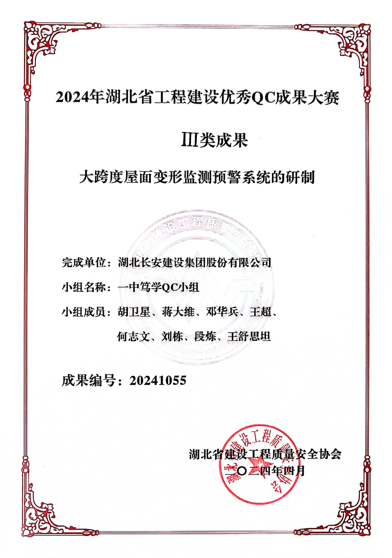 英山一中篤學(xué)QC小組《大跨度屋面變形監(jiān)測(cè)預(yù)警系統(tǒng)的研制》、順鮮項(xiàng)目QC小組《研究一種新型地下水防滲施工方法》獲評(píng)2024年湖北省工程建設(shè)優(yōu)秀QC成果大賽Ⅲ類(lèi)成果
