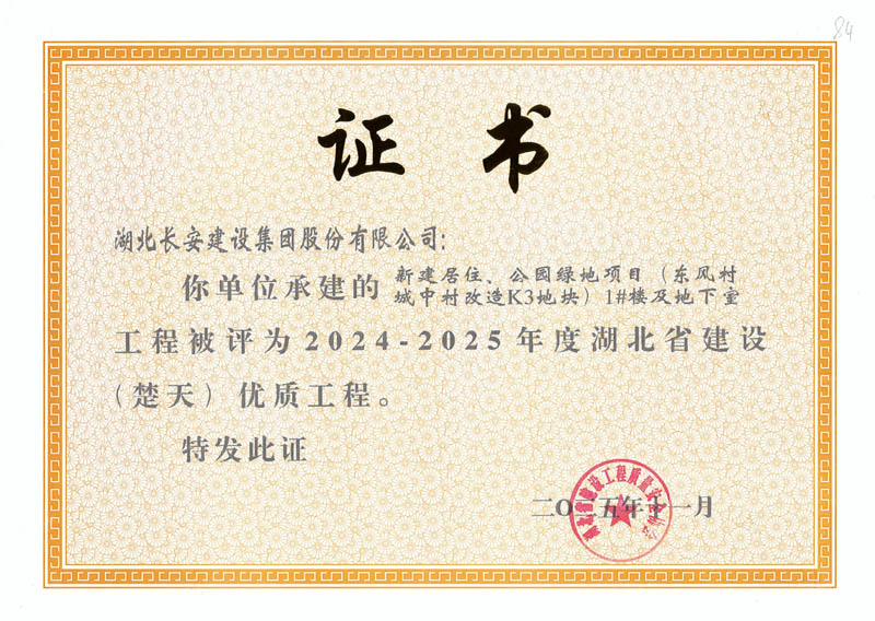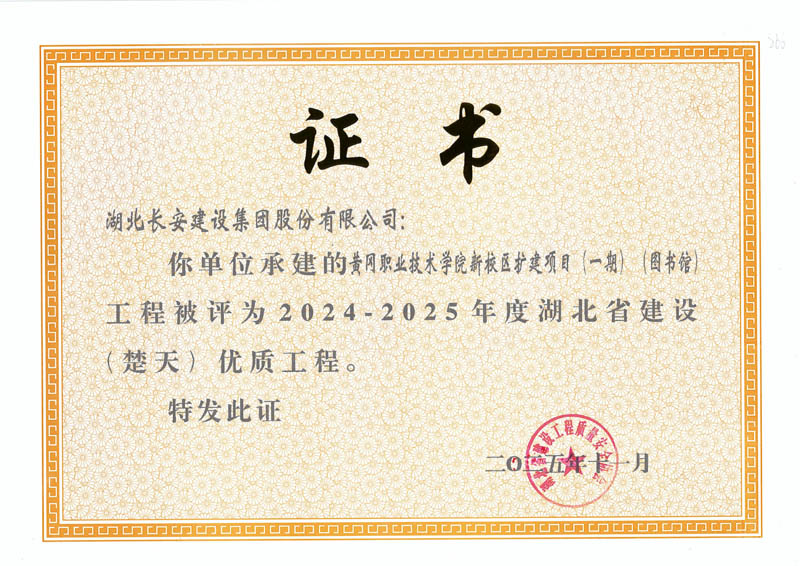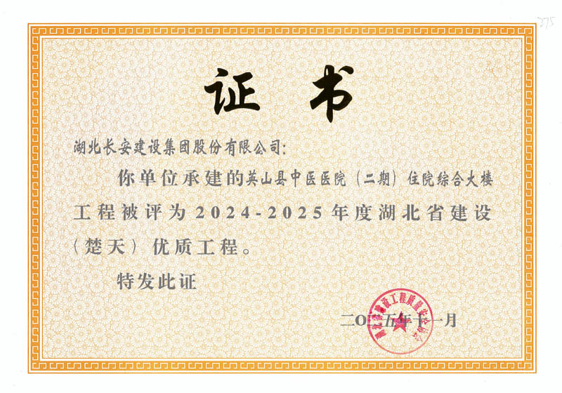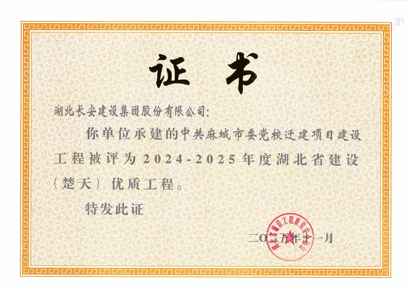 9項工程獲評2024-2025年度湖北省(楚天)優質工程