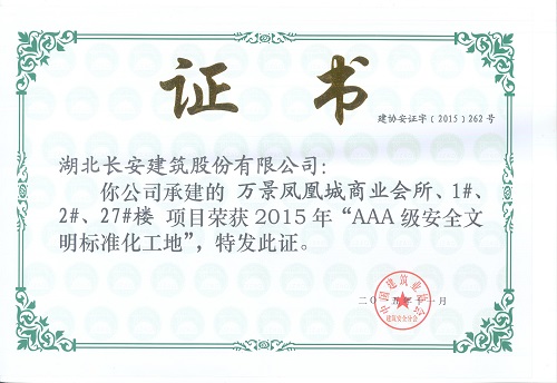 萬景鳳凰城商業會所、1#、2#、27#樓榮獲2015年“AAA級安全文明標準化工地”