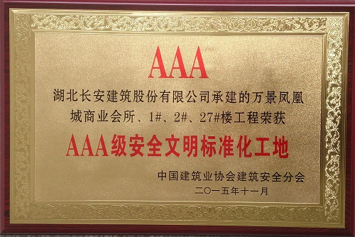 萬景鳳凰城商業會所、1#、2#、27#樓榮獲2015年“AAA級安全文明標準化工地”獎牌