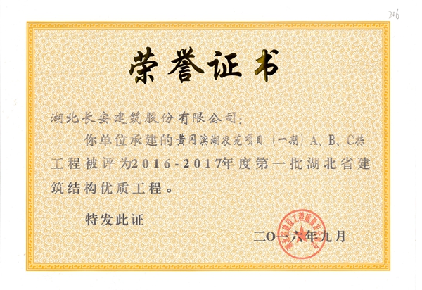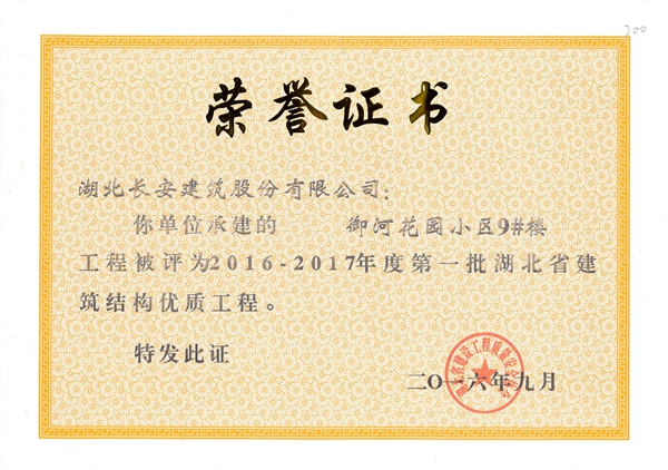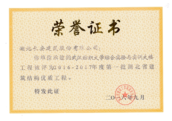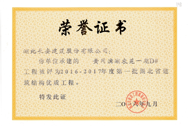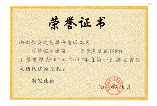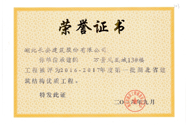 2016年省建筑結構優質工程榮譽證書
