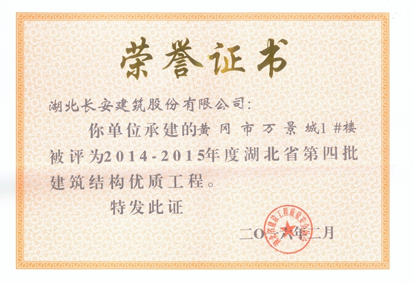 黃岡萬景城1#樓被評為2014-2015省結構優質