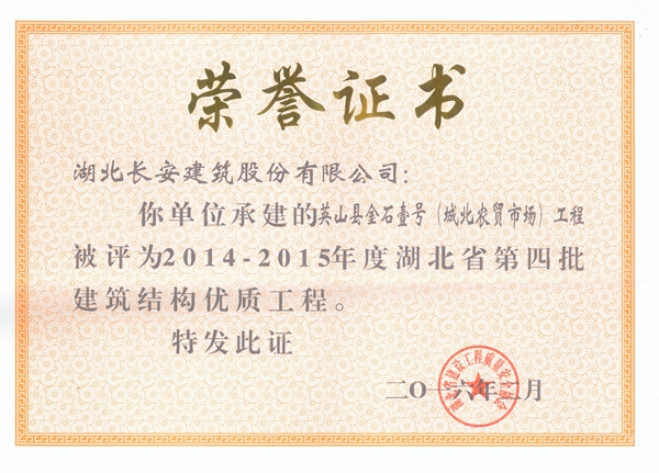 英山金石壹號(城北農貿市場)被評為2014-2015省結構優質