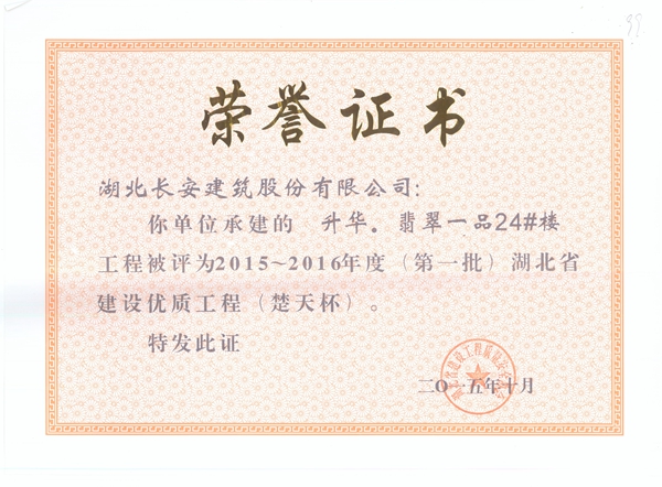 升華翡翠一品24號樓省建設(shè)優(yōu)質(zhì)楚天杯2015