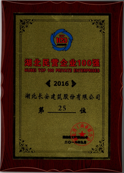 湖北民營(yíng)企業(yè)100強(qiáng)25位(2016)