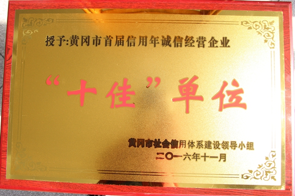 授予黃岡市首屆信用年誠(chéng)信經(jīng)營(yíng)企業(yè)“十佳”單位(2016)