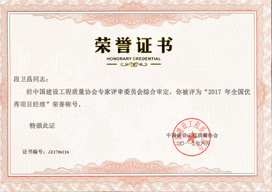 2017年全國優(yōu)秀項目經(jīng)理(段衛(wèi)昌)