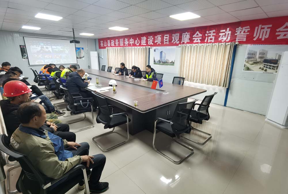 216上午,英山縣政務服務中心項目觀摩會誓師大會在該項目部會議室召開,現場副總李智威作出要求:第一、實行目標管理,確保工程質量高起點,打造標桿工程;第二、要成立“創優”領導小組與分公司、項目部三條線開展活動管理工作;第三、質量安全保證,專人把關確保一次成優,做到不返工、不窩工;第四、各方配合,互創條件,共創精品工程。