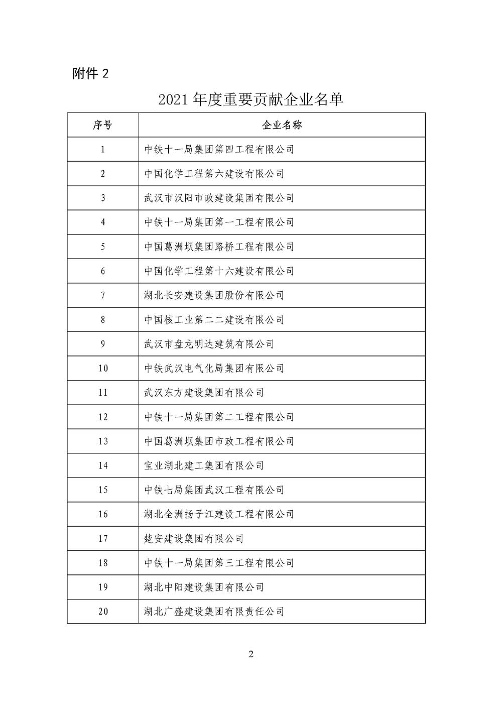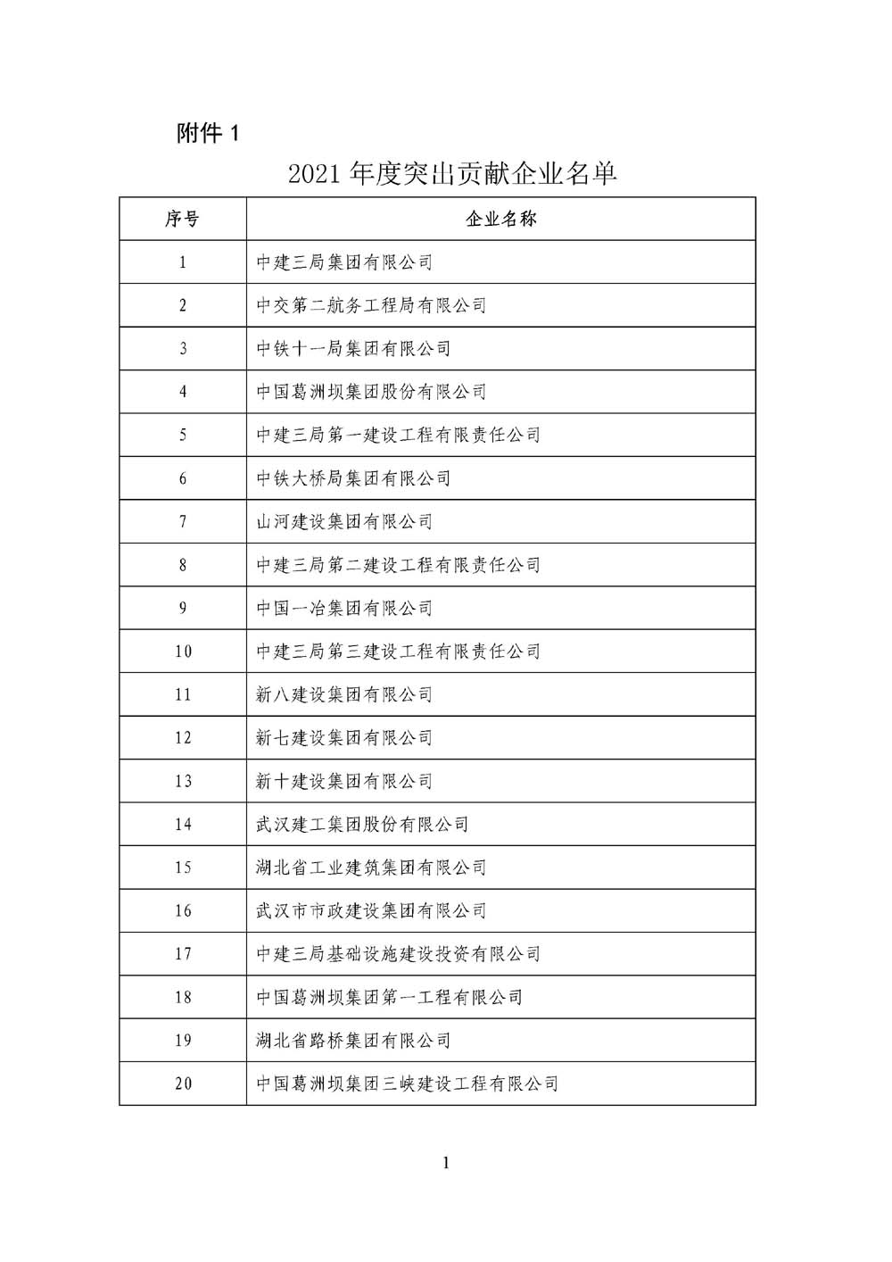 湖北建筑業(yè)的快速發(fā)展離不開(kāi)全省建筑同仁的共同努力奮斗,其中中建三局集團(tuán)有限公司等20家企業(yè)作出了突出貢獻(xiàn),中鐵十一局集團(tuán)第四工程有限公司等95家企業(yè)作出了重要貢獻(xiàn)。