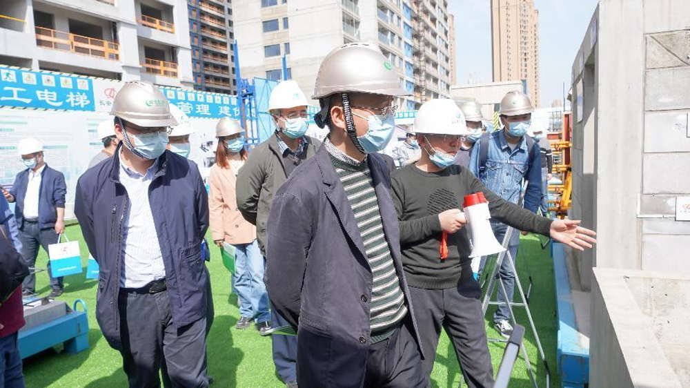 綠色建造適應時代發展趨勢,“三位一體”領航建筑業高質量發展。3月29日,湖北省綠色建造科技創新聯合體觀摩交流會在集團公司新建居住、公園綠地(東風村城中村改造K3地塊)項目召開。湖北省建筑科技與建筑節能辦公室主任董文斌、科員劉柯,武漢硚口區建筑管理站黨委書記龍學民、站長曾軍,集團武漢分公司(辦公區)經理付賢、技術科副科長蔣大維,項目經理、經營承包負責人倪世寬參加會議并發言。集團總工程師陳偉明主持會議。