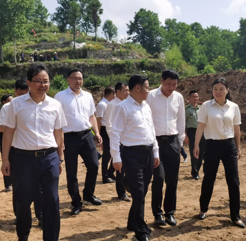 5月25日上午,英山縣委書記鄭光文,縣委常委、副書記、政法委書記張春梅,縣委常委、宣傳部部長童壁等領導一行,在集團董事長段衛昌的陪回下,到紅二十五軍長征集結地歷史步道建設項目舉行奠基儀式,調研重點項目推進情況。
