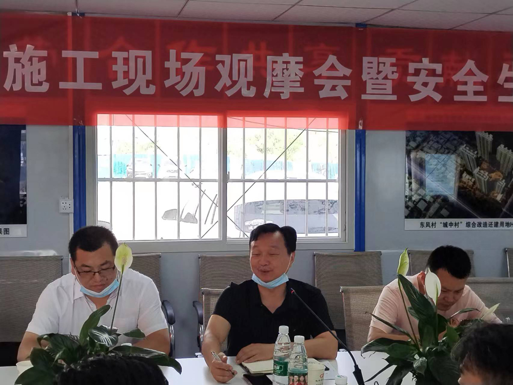 10日下午會議上,硚口區建設局黨委書記、局長潘濤對下一步的建設安全生產工作作了部署和要求,他說,安全工作只有起點沒有終點,一要將安全放在生產的首位,將“安全十五條”抓細抓實;二要建立長效機制,多措并舉,筑牢安全底線;三要加強安全宣傳、培訓,提升安全意識和突發事故的應急應變處置能力;四要以“婆婆嘴、跑斷腿”的精神多宣講、勤檢查,及時發現隱患,及時消除隱患;五要高度重視疫情防控、惡劣天氣、工人健康、汛期防護以及大型機械設備、工地用電的管理,確保安全無事故。集團總經理葉發保作了先進經驗交流發言,他說,我們公司的使命是“質量為本,誠信經營,合作共享,貢獻社會”,“建百年長安”是公司的偉大愿景,我們始終將安全與質量放在工作的首位。一是施工現場按照集團公司標準化設計和布置,以科技創新構建智慧工地,以智能化筑牢織密安全防護網;二是以人為本,責任到位,夯實安全責任體系,系緊安全保護繩;三是強化安全,抓緊做實安全工作,確保工人安全和工程建造質量,做安全生產的宣傳員和堅定執行者;四是以綠色加法營造健康環保工地,保障安全質量、生產效益雙豐收。 接著,硚口區城管局、房管局、易家街等多家單位負責人就所轄區域的安全檢查以及整治、整改情況,作了專題匯報。