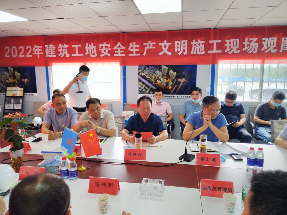6月10日--11日,2022年建設工地安全生產文明施工現場觀摩暨安全生產月活動啟動儀式在集團公司承建的東風村“城中村”綜合改造還建用地H5地塊(項目)圓滿舉行。硚口區政府(政府辦)、建設局(建管站)、城管局、應急管理局、環保局以及包括硚口區所有街道在內的相關部門(單位)領導出席啟動儀式。硚口轄區建筑、市政、拆除工地建設、監理、施工單位相關負責人以及集團公司各區域(分公司)經理和主要技術、工程管理人員參加了觀摩。