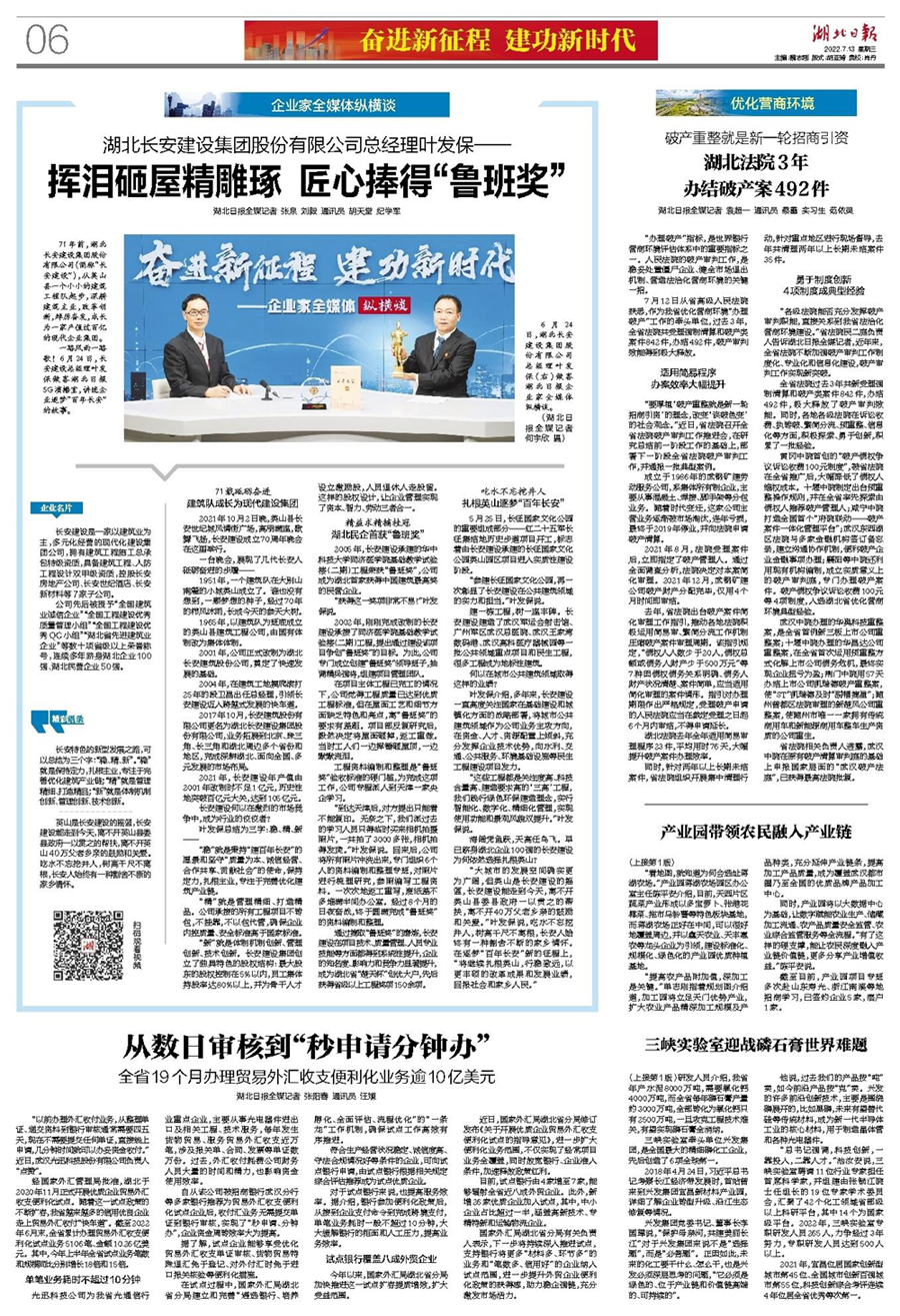 一路風雨一路歌!6月24日,長安建設總經理葉發保做客湖北日報5G演播室,講述企業逐夢“百年長安”的故事。