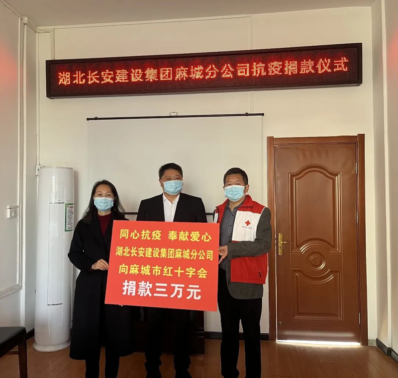 11月5日,湖北長安建設(shè)集團麻城分公司向市紅十字會捐贈抗疫捐款三萬元。市委統(tǒng)戰(zhàn)部副部長、市工商聯(lián)黨組書記、常務(wù)副主席項慶華參加捐贈活動。