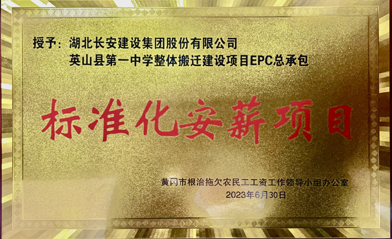 評選中,由英山縣長安建設集團股份有限公司承建的英山縣第一中學整體搬遷建設項目(EPC總承包)被評為黃岡市“標準化安薪”項目。此次評選活動對于英山縣全面推進“標準化安薪項目”先行區創建走深走實具有重要意義