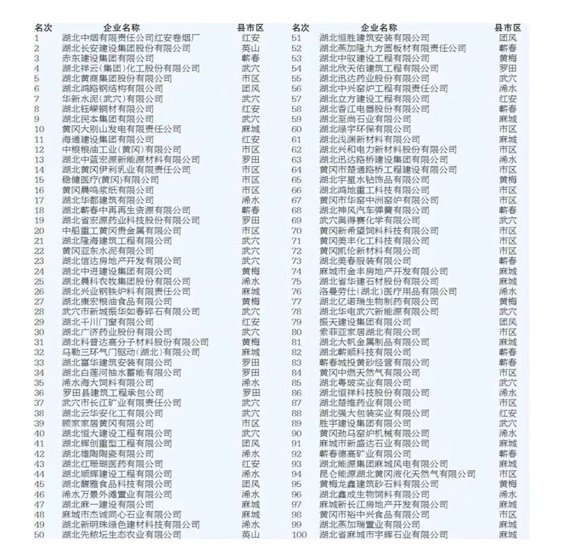 集團公司位列2023(第十屆)黃岡企業(yè)100強第2名