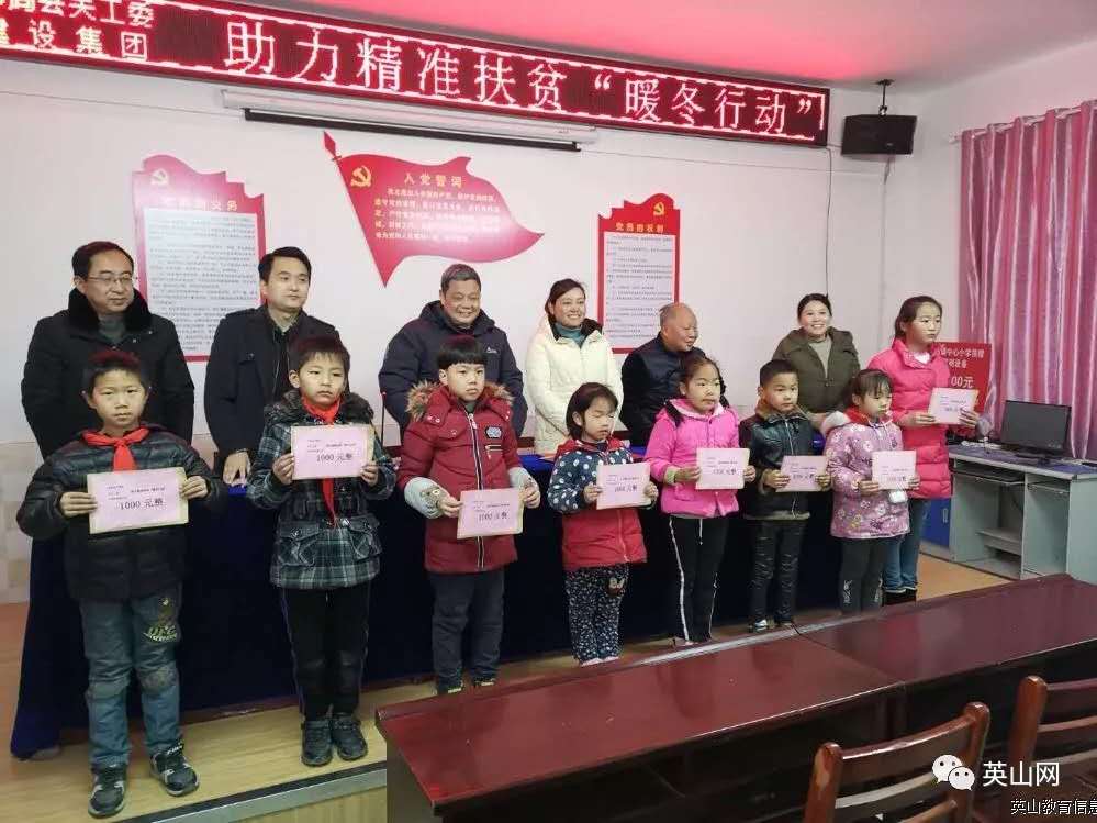 2018年12月19日上午,由英山縣關工委發起并組織的2018年“暖冬行動”資助貧困學生啟動儀式,在石鎮中心小學隆重舉行。湖北長安建設集團積極參與,當場捐款3萬元。這是我集團為助力政府打贏扶貧攻堅戰,于當月7日向英山縣精神衛生中心捐款50萬元之后,又一次影響深遠的資助行動。