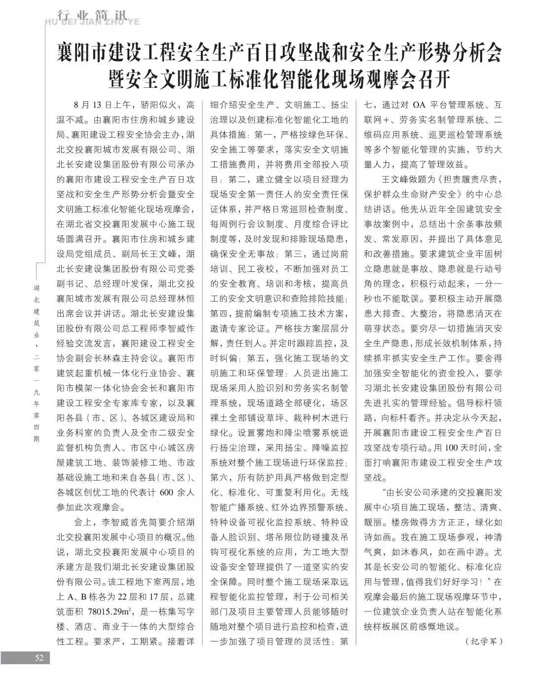 襄陽市建設(shè)工程安全生產(chǎn)百日攻堅戰(zhàn)和安全生產(chǎn)形勢分析會暨安全文明施工標(biāo)準(zhǔn)化智能化現(xiàn)場觀摩會召開
