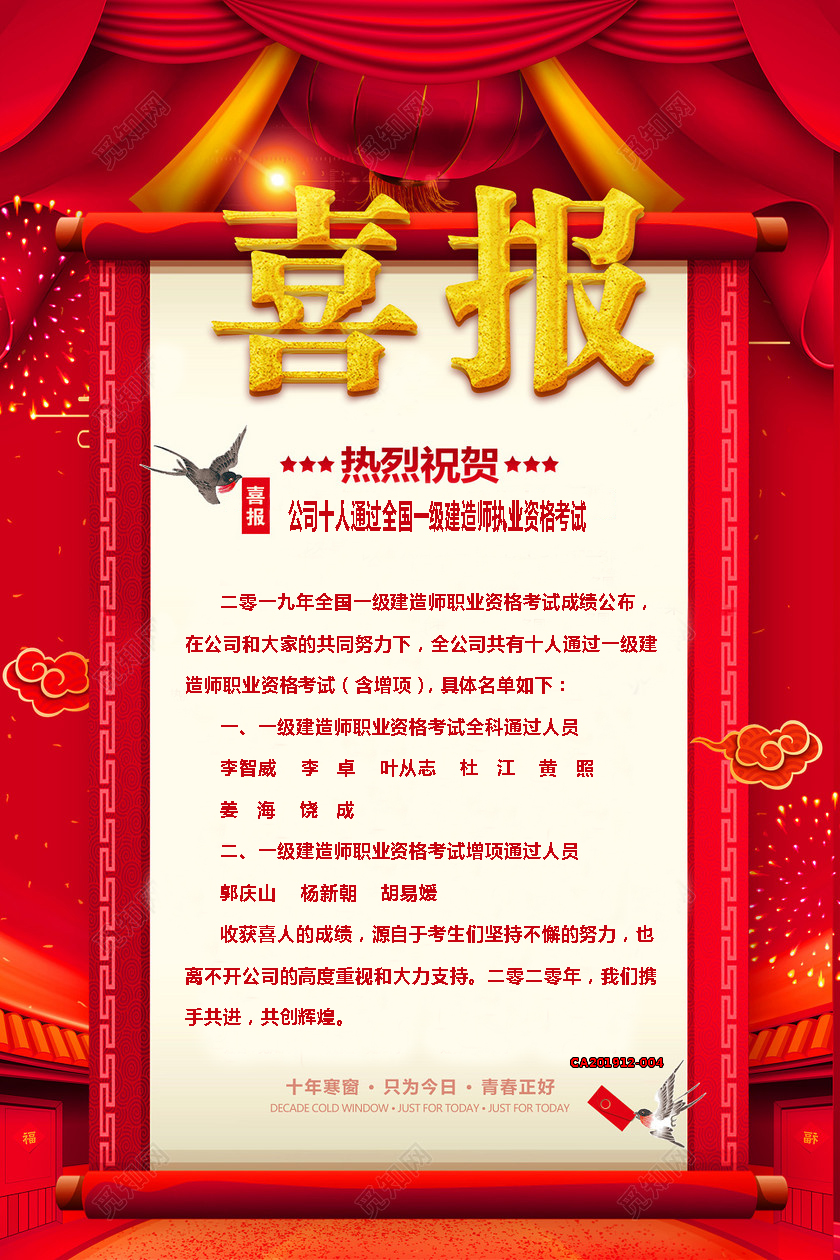2019年一級建造師職業資格考試喜報