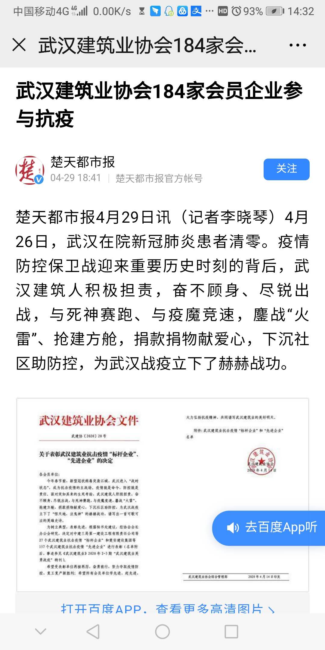 摘自《楚天都市報(bào)》官方公眾號(hào)4月29日。
