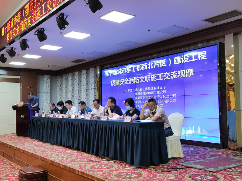 8月26日,由省住建廳、襄陽(yáng)市住建局、襄陽(yáng)高新區(qū)建設(shè)局主辦,湖北長(zhǎng)安建設(shè)集團(tuán)股份有限公司(簡(jiǎn)稱長(zhǎng)安建設(shè)集團(tuán))、北龍建設(shè)集團(tuán)有限公司承辦的襄陽(yáng)十堰隨州城市群(鄂西北片區(qū))建筑工程質(zhì)量安全消防文明施工經(jīng)驗(yàn)交流觀摩會(huì)在襄陽(yáng)隆重召開。省住建廳質(zhì)安處處長(zhǎng)王志勇出席會(huì)議并講話,襄陽(yáng)市住建局副局長(zhǎng)柳建庭主持。省住建廳和襄陽(yáng)、孝感、十堰、隨州、神農(nóng)架林區(qū)及襄陽(yáng)各縣(市,區(qū))住建部門及鄂西北片區(qū)建筑企業(yè)代表共計(jì)320余人參會(huì)。此次設(shè)主會(huì)場(chǎng)1個(gè)、分會(huì)場(chǎng)3個(gè)。通過云平臺(tái)進(jìn)行線上、線下密切互動(dòng),同步直播。