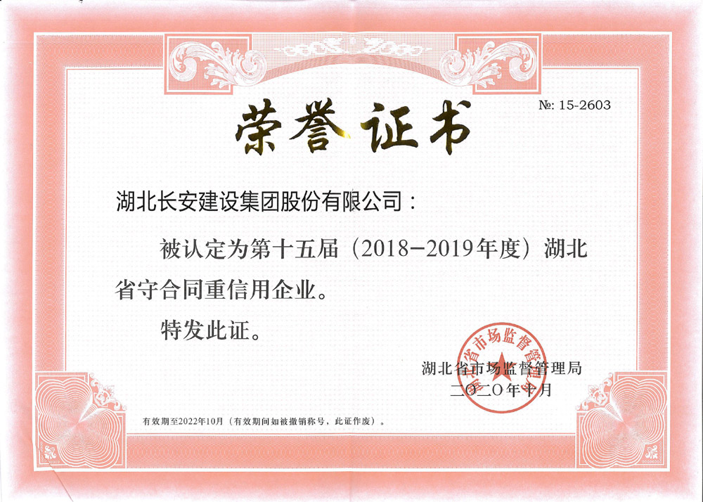 集團榮獲湖北省守合同重信用企業