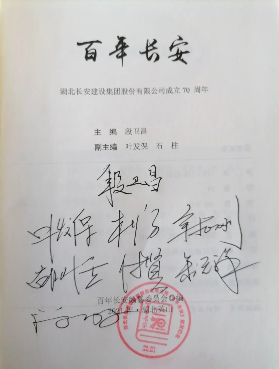 湖北長安建設集團《百年長安》簽發